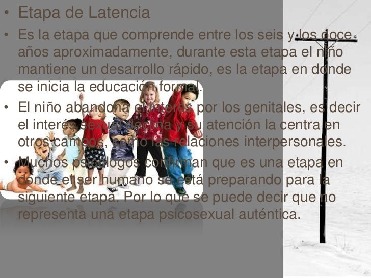 Muchos psicólogos confirman que es una etapa en donde el ser humano se está preparando para la siguiente etapa. Por lo que se puede decir que no representa una etapa psicosexual auténtica. - 11. Genital